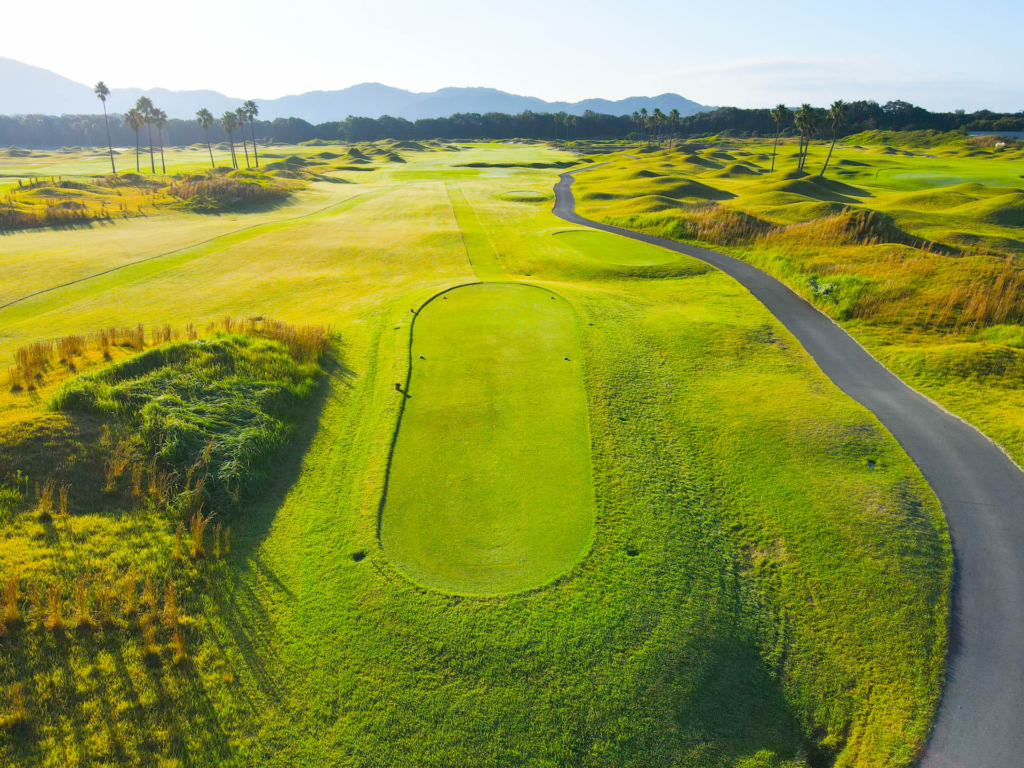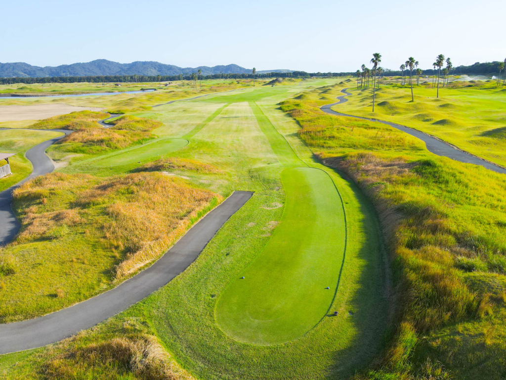 このコースの最大の特長は、「風がハザード」となる戦略性の高さです。瀬戸内海からの巨風が吹きつけるため、刻々と変化する風の流れを攻略できるかどうかが勝負を分けます。