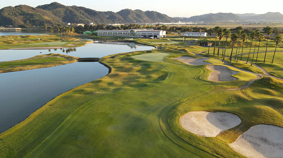 JFE瀬戸内海ゴルフ倶楽部は、1991年4月に開場した、名匠・加藤俊輔氏が手がけた日本屈指の本格的なリンクスコースです。国内でも珍しく、海に浮かぶ人工島に造成されたコースであり、浮沈を繰り返しながら進化を続ける「生きたコース」と表現されています。