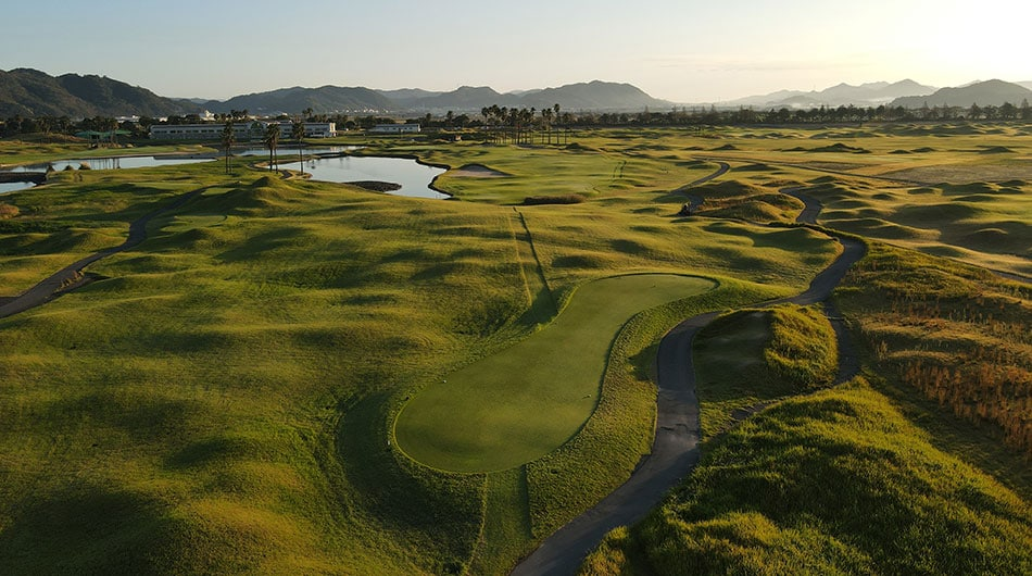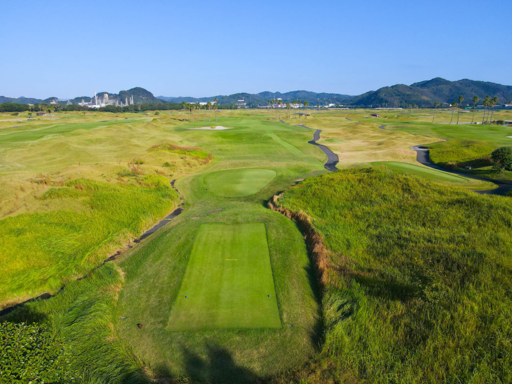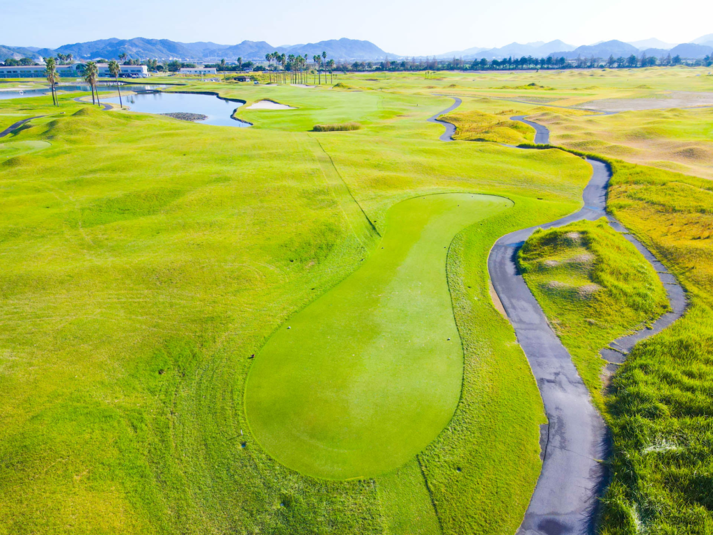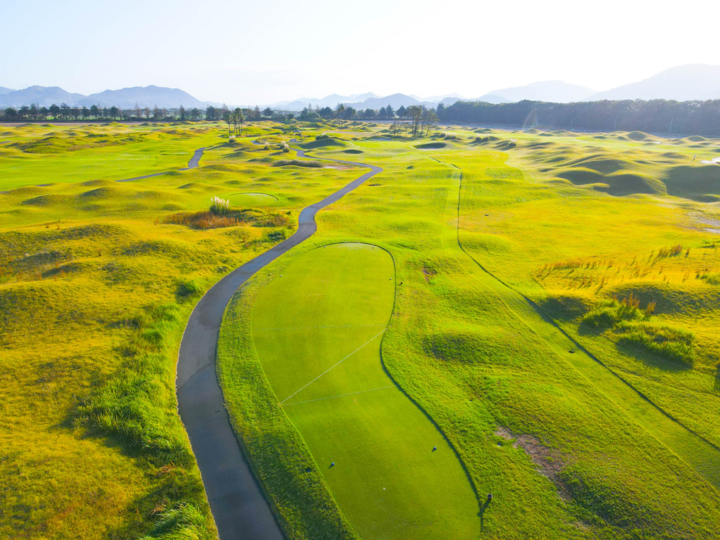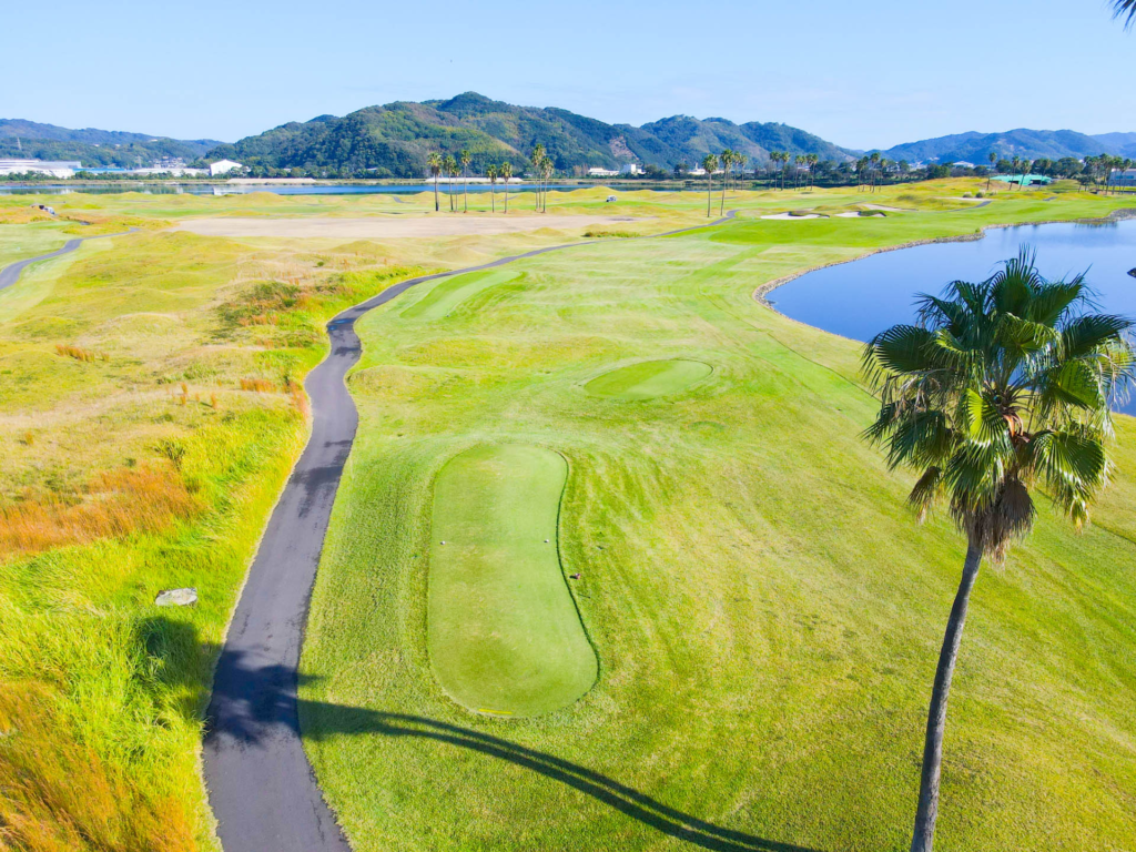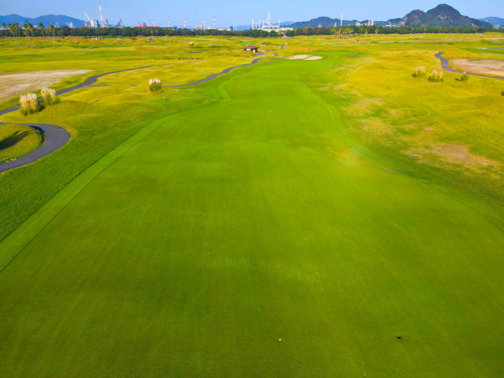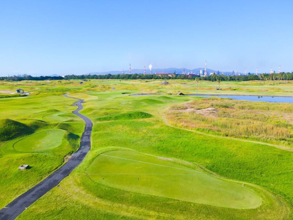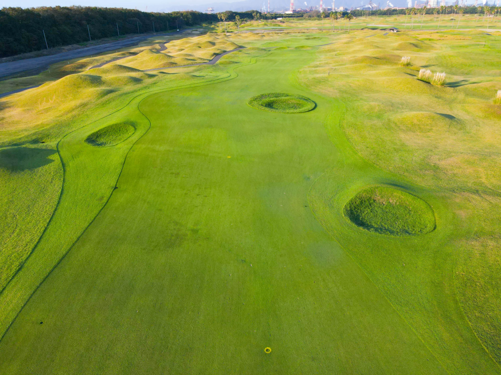 フラットな人工島に造られた本格リンクスで、特に「風」が最大のハザードとして効いてくるのが特徴です。フェアウェイ自体は広めながら目標物が少なく、細かなマウンドや巧みに配置されたバンカー・池によって、ティーショットの落とし所とセカンドの距離感がシビアに要求されます。OUTは距離もたっぷりあり、1番からしっかり振っていきたくなるレイアウトですが、風向き次第で番手選択が大きく変わるため、無理に攻めるよりも風を計算したマネジメントがスコアメイクの鍵になります。