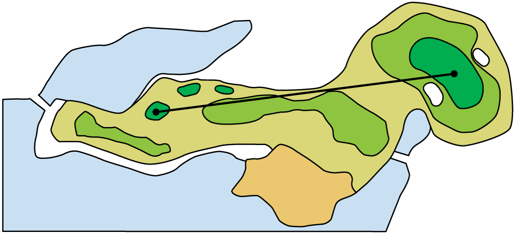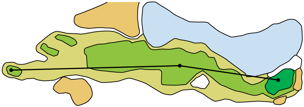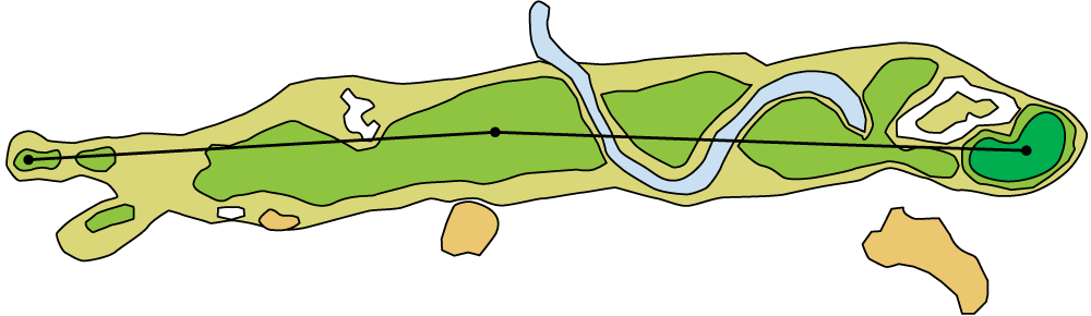 グリーン近くまでS字に走っている - ・バンカー率26%と高め
