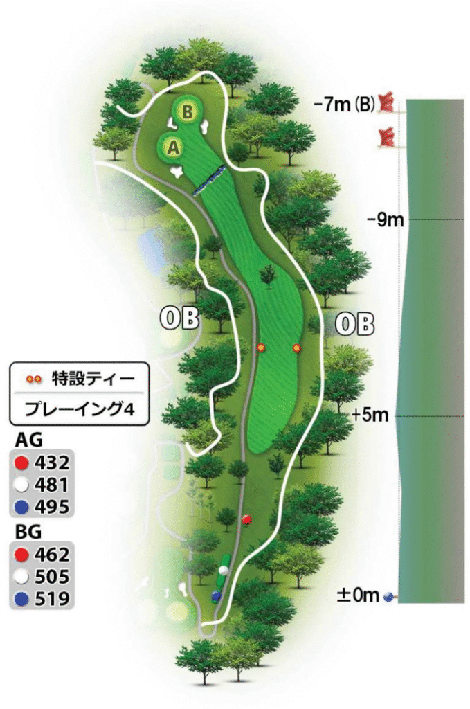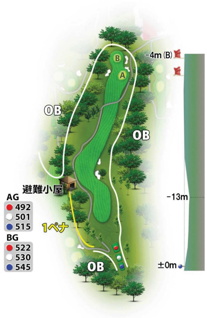 北コースは全27ホール中、最も「技術重視」のコースとされ、特に2番ホールの難易度が高いことで知られています。全体の距離は3コースの中で最も短めで、飛距離勝負というよりもポジショニングと正確なショットが鍵になります。ロングホールでツーオンを狙える設計のものもあり、攻めのゴルファーには魅力的。また、アンジュレーションのあるフェアウェイや斜面・ライの違いから、番手選択やライ判断力も問われるコースです。