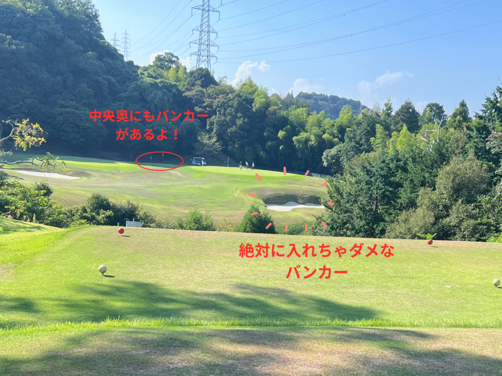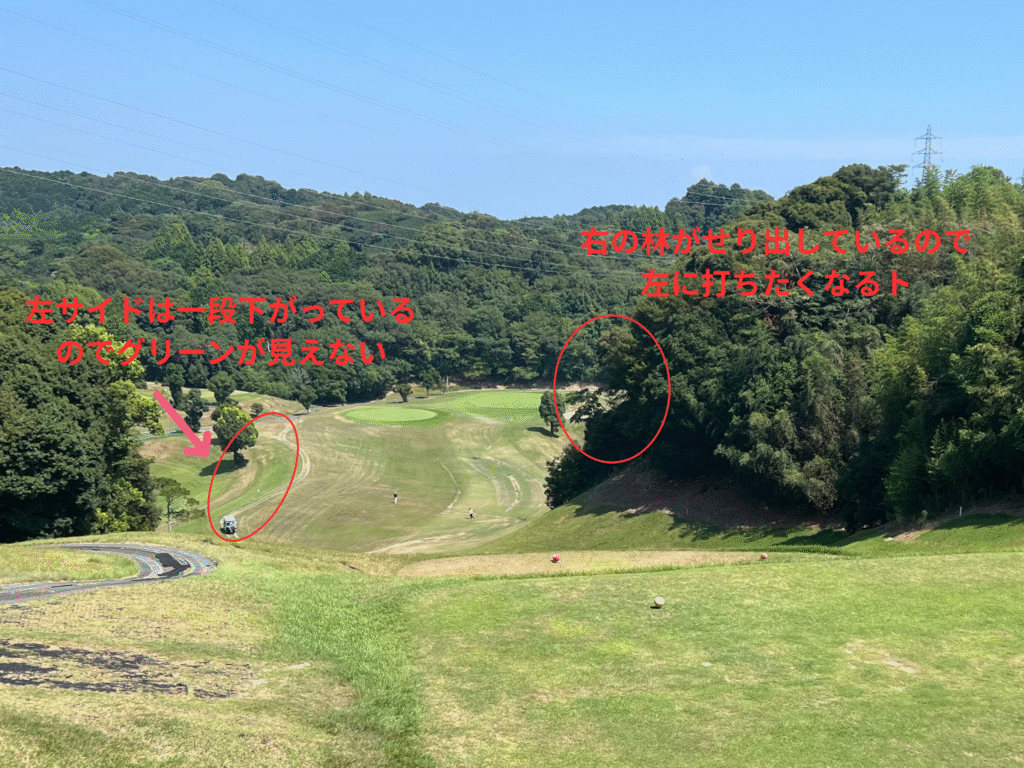 左サイドに行ってしまうとセカンドでグリーンが見えないよ!