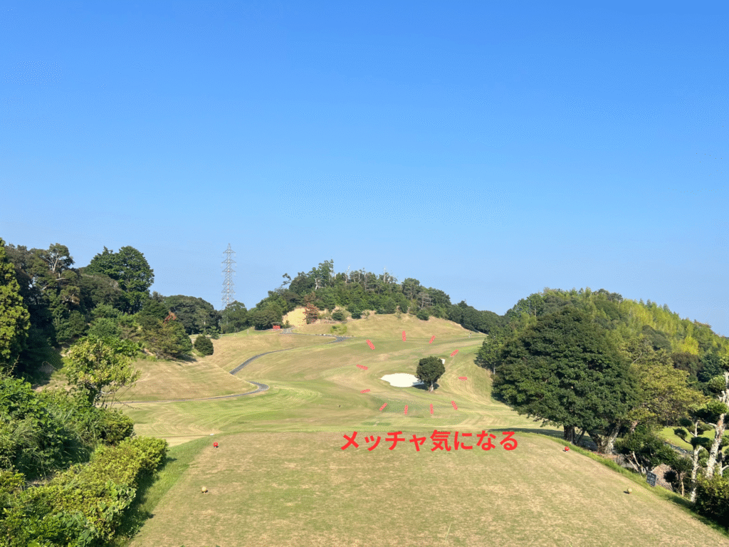このホールのティーショットは150~180ヤードほどしか打っちゃいけないホールなのを忘れていたが、先が全く見えなかったおかげで幸いにもU5を選択。ティーショットは天ぷら気味で右方向へ。(同組の人は知らずに飛ばし過ぎてOBになってた)