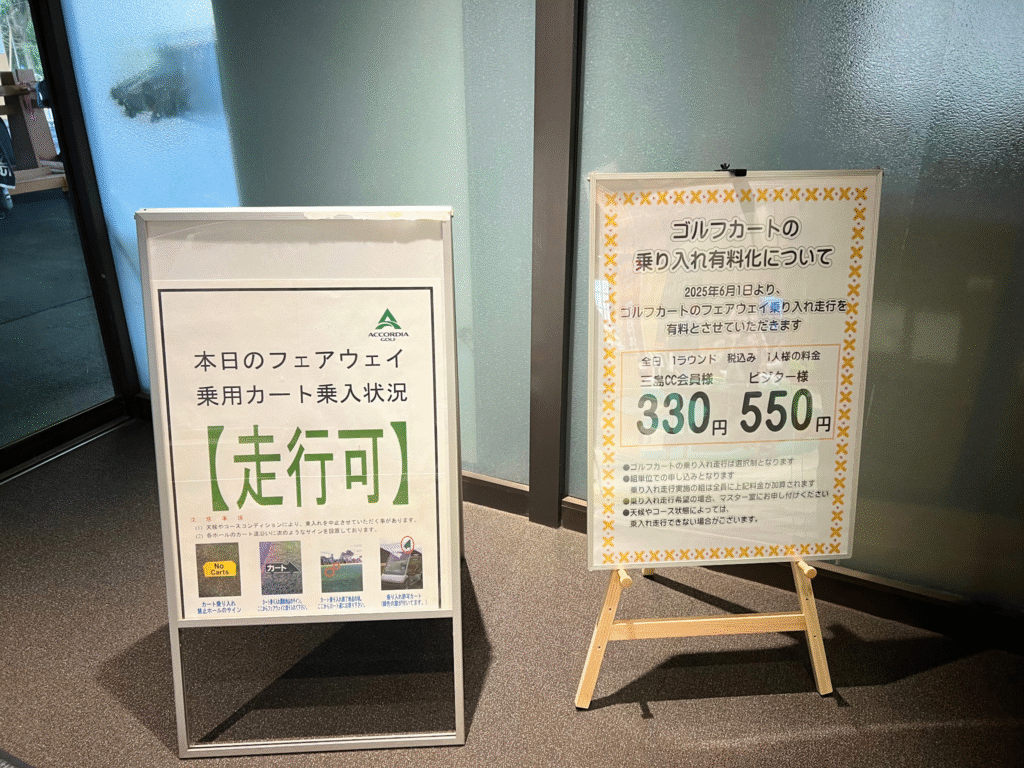 お金払えばカートの乗り入れも可能だよ!カート道のアップダウンは激しくはスピードが結構出るので運転は要注意!