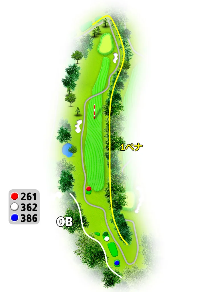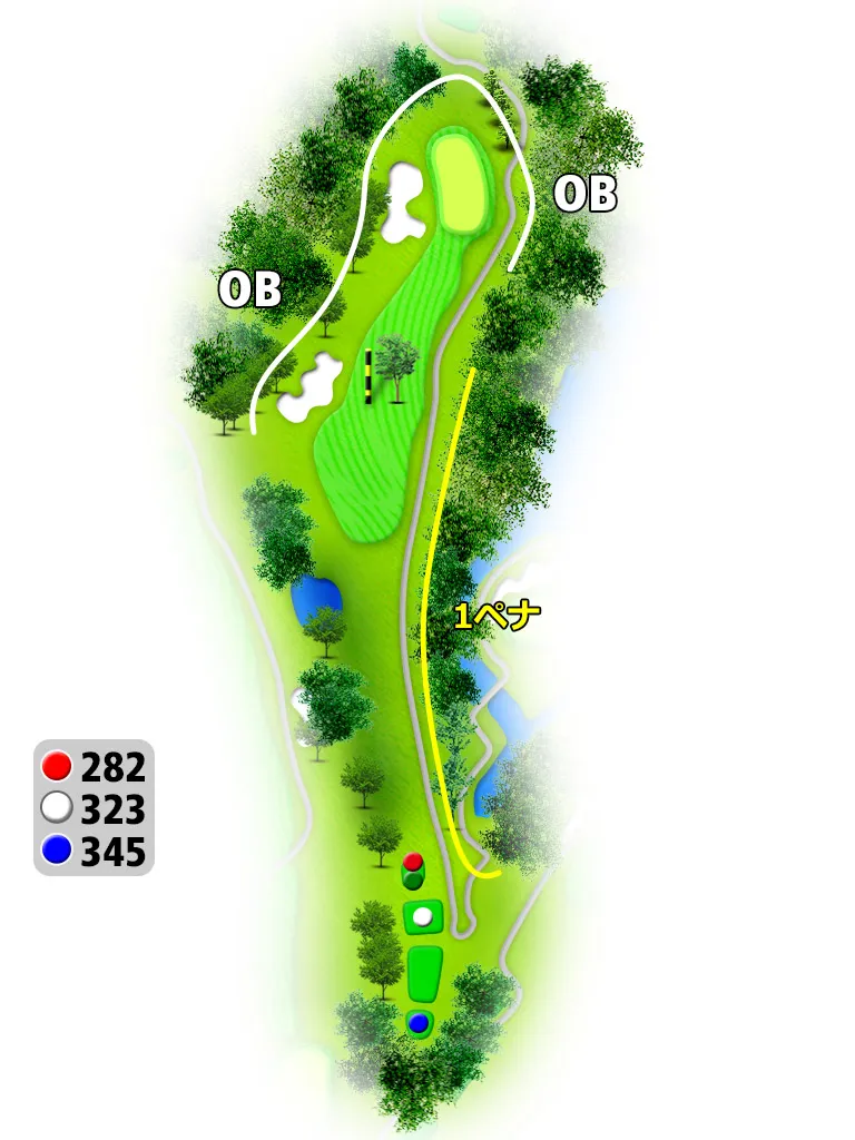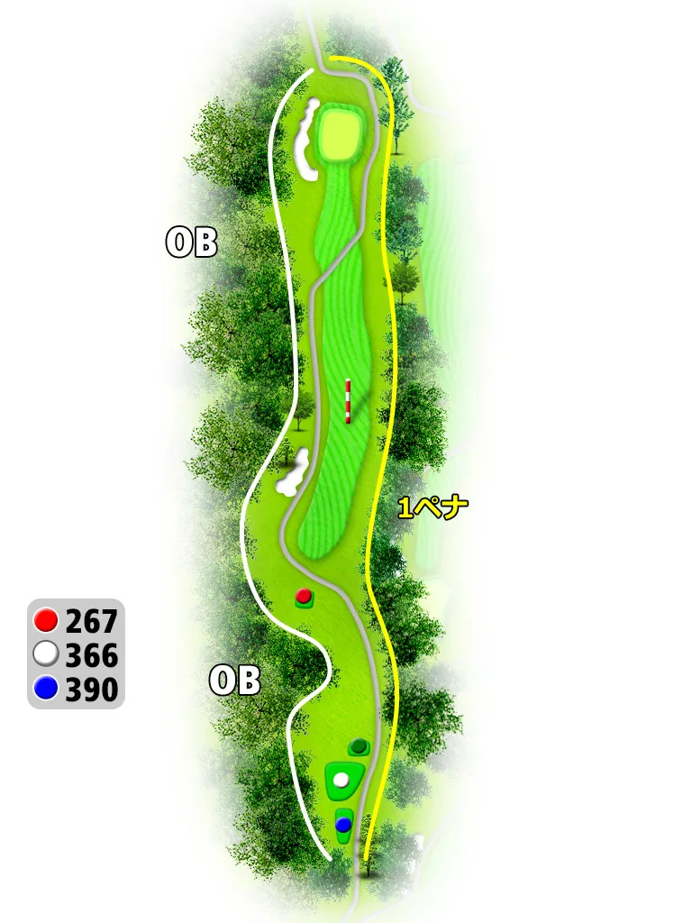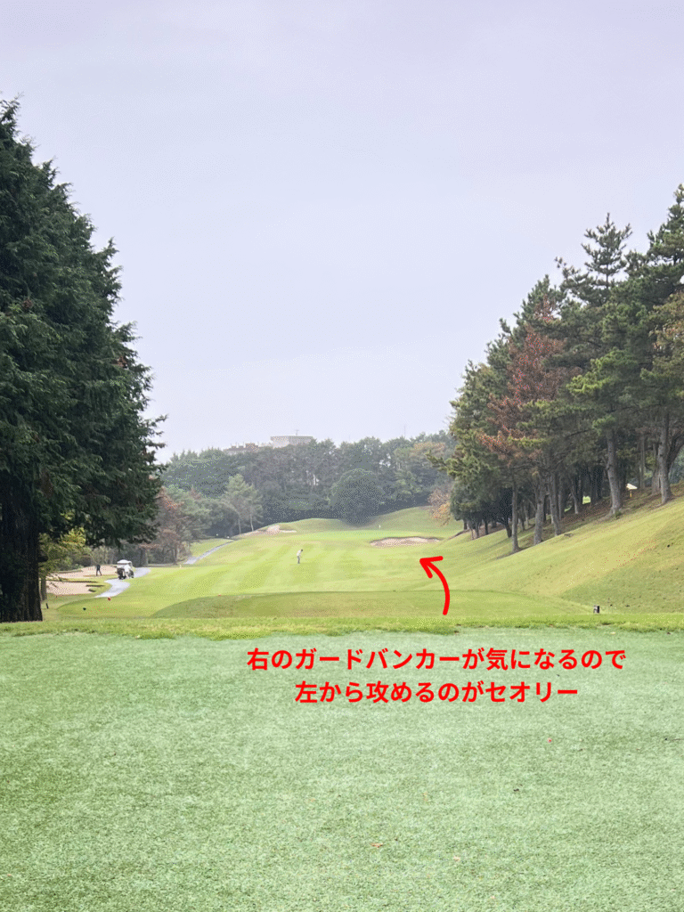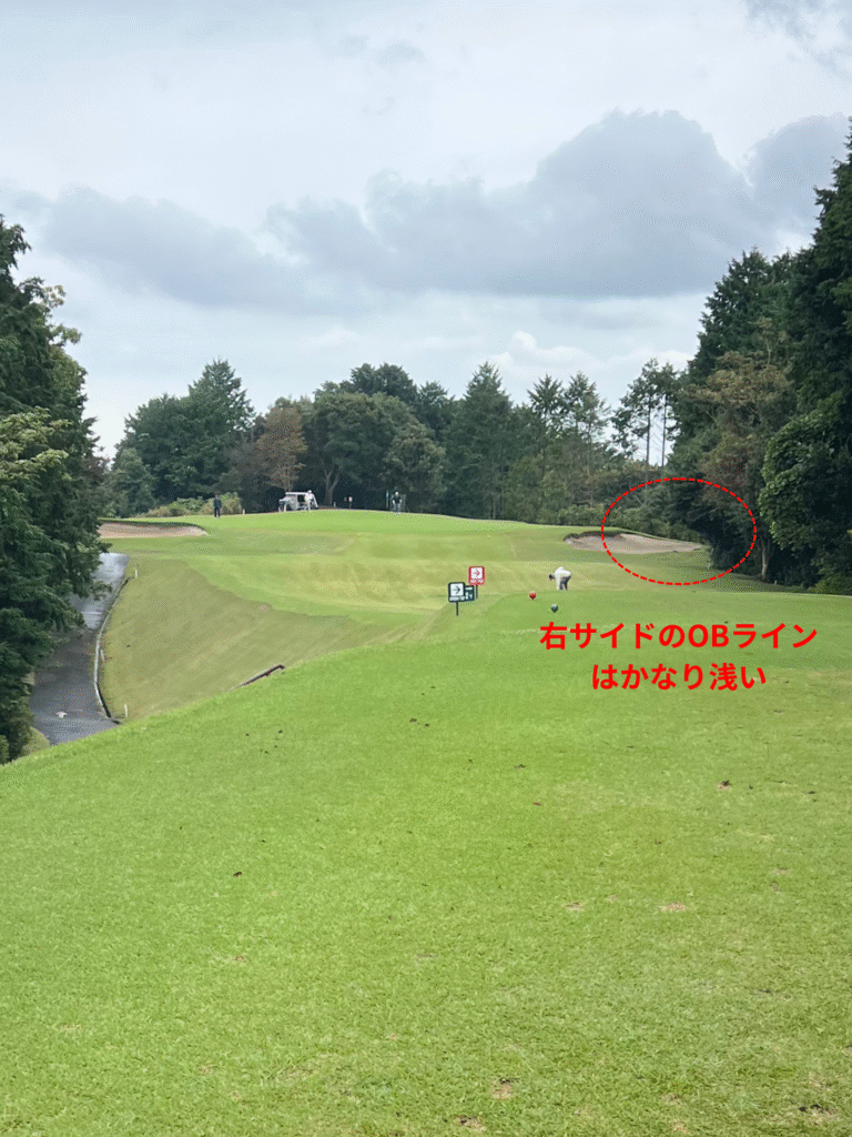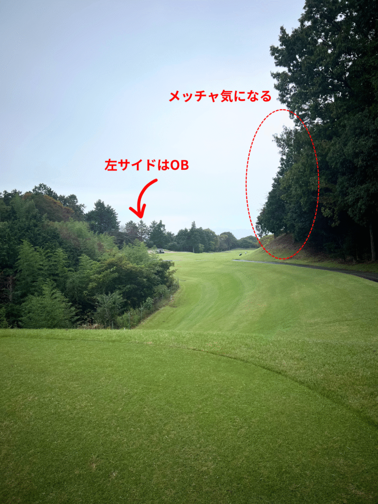 ティーショットは両サイドが広く最悪でも1ペナなので思い切って振ってやりました。まぁまぁのナイスショットでフェアウェイキープ。