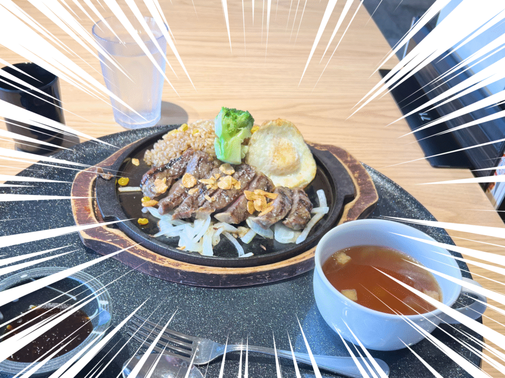 事前のリサーチでは一番人気の『駿河漁師膳』か『五目あんかけ焼きそば』を選ぶ予定だったけど、「鉄板ビーフガーリックライス」に心変わりしてましたw お肉も柔らかくて美味かったけど、少し足りなかったかも・・・でも食事補助がついていたので、780円で食べられたので大満足でした!
