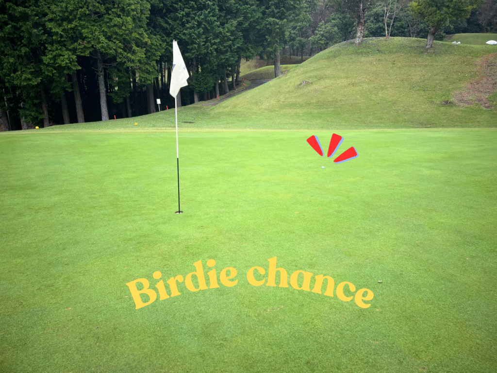 ボールの位置は下り5歩程度のバーディーチャンス。下りなのであまり強く打てなかったので若干ショート(涙)パーパットはタップインで決めて本日初のパーをゲット!いい流れになってきた。