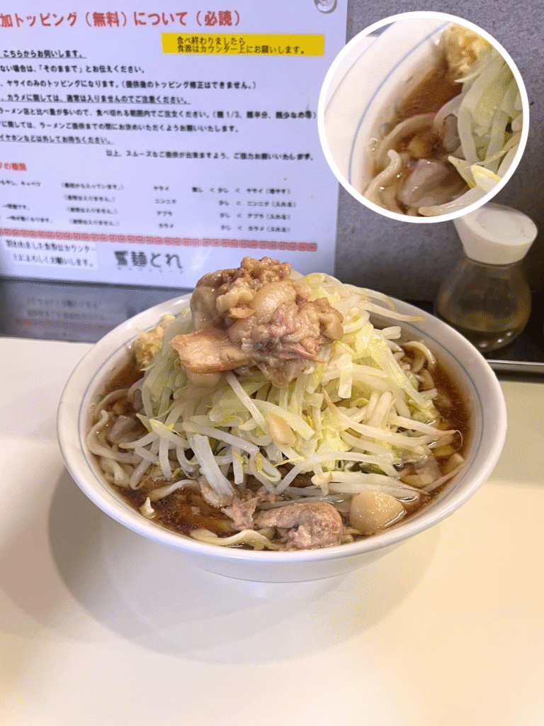 初めて訪れた『麺とれ』の印象は、比較的リーズナブルでトッピングも程よい量なので、二郎系初心者の方も行きやすいお店だと思います。コールの緊張感も楽しめるのでオススメですよ。
